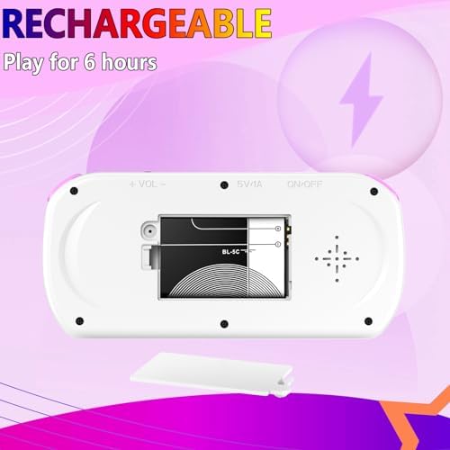 ๐ Rechargeable Battery: The retro video game console has a built-in 1200mAh Li-Ion rechargeable battery, ensuring uninterrupted power source for kids’ games. It is also an environmentally friendly choice as it eliminates the need for frequent battery replacement. When fully charged, the console’s gaming time is approximately 4 to 6 hours, making it ideal for video game play on the go.